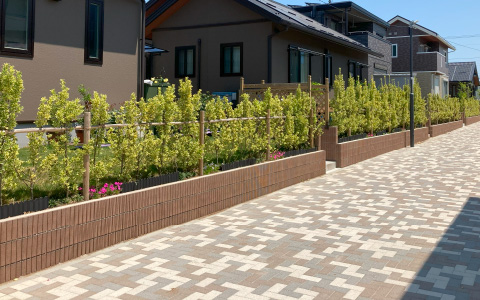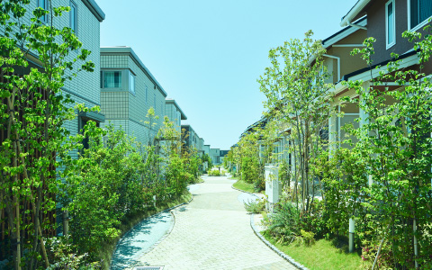 まちへの出入口はメインゲート(1カ所)、コーナーゲート(3カ所)、歩行者専用通路(1カ所)のみ。住民以外の敷地内への出入りを制限し、通過交通の少ない安全なみち空間。