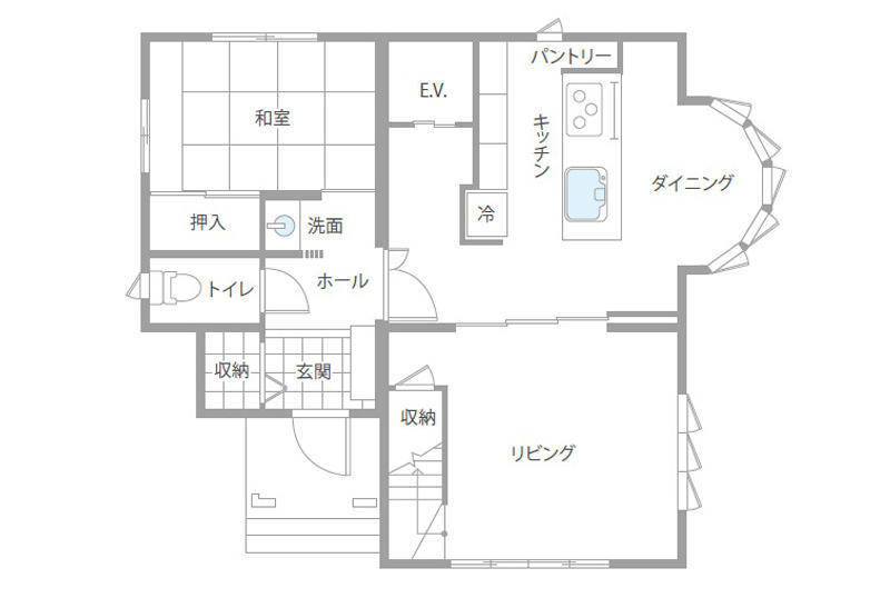 美しい街並みに映える大胆な大屋根と緩やかに弧を描くボウウインドウ