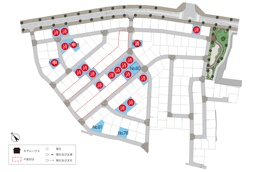 - 本分譲地では、快適で良好な住環境を皆様に提供する為に 、 まちなみガイドラインを設けております。