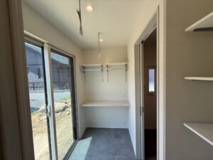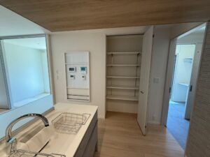 水回りが集約し、家事がラクラク。1階家事室の隣にはファミリークロークをご用意し、アイロンがけをした衣類をすぐに収納することができます。
