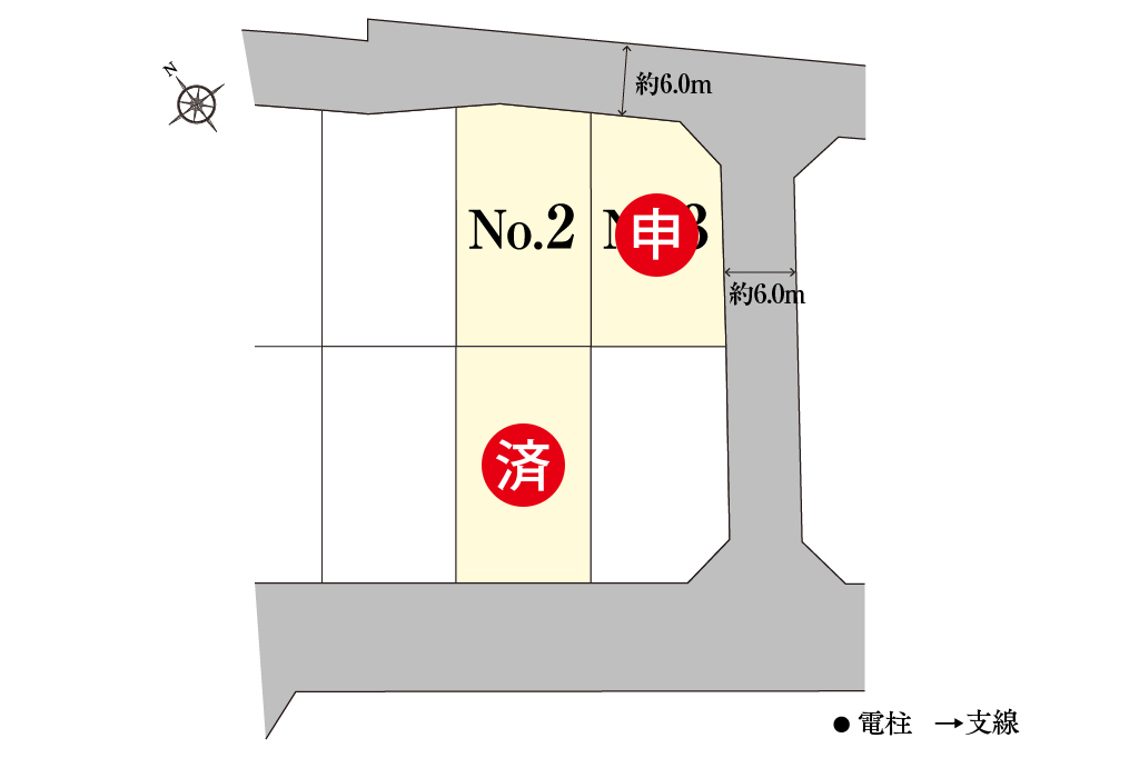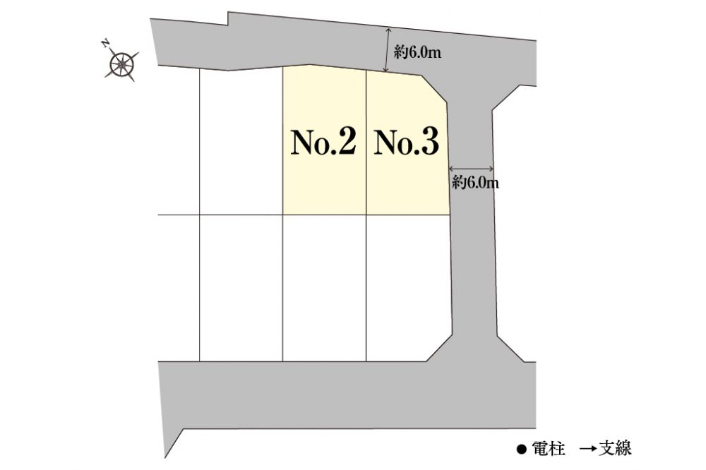 - 北側6m、南東側6m公道(アスファルト舗装)