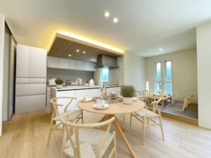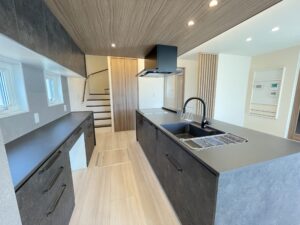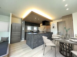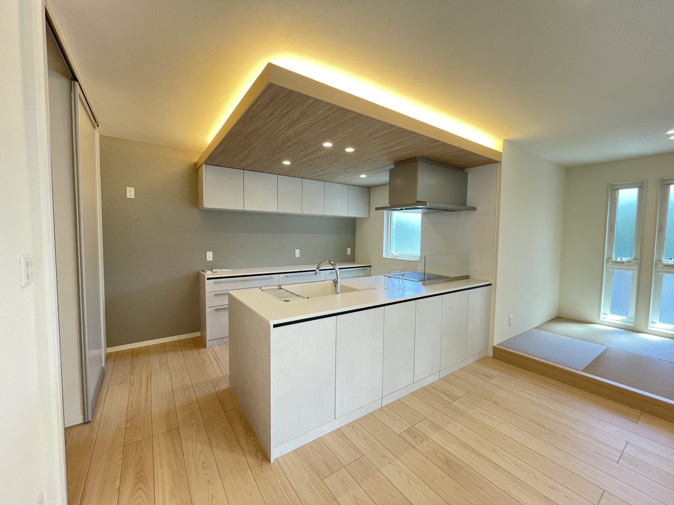 キッチンはこだわりのアイランド型になっており、食事の配膳等動きやすく、暮らしやすい間取りとなっています。