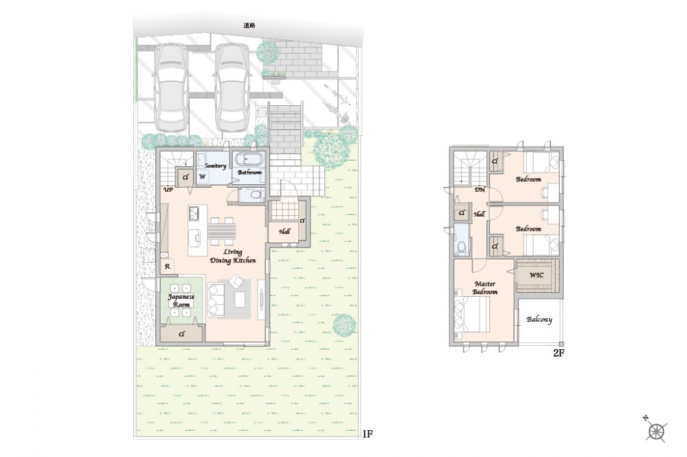 No.2/広いお庭と3台駐車スペースを備えたゆとりのある家