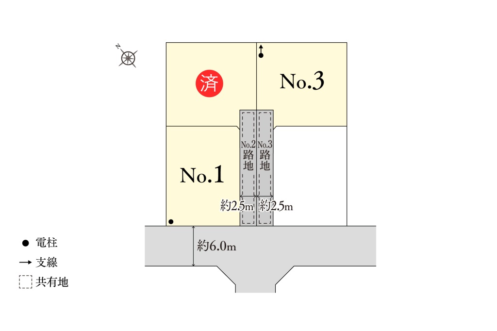 ※共有地に関する協定書の締結あり、地役権設定あり(共有部分/No.2:43.70m²、No.3:43.69m²を共有地として提供) - 取引態様