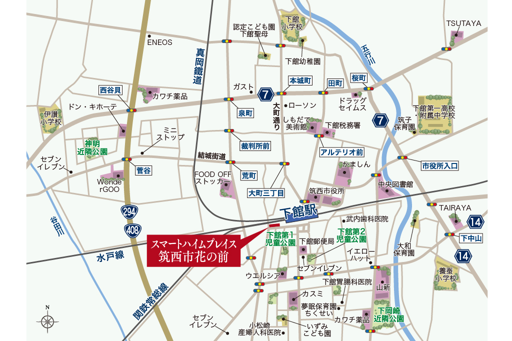 JR水戸線「下館」駅まで徒歩2分(約150m)