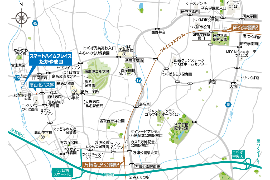 - つくばエクスプレス「万博記念公園」駅まで徒歩41分(約3,280m)