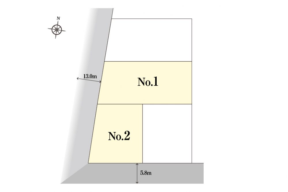- 西側13.0m・南側5.8m公道(アスファルト舗装)