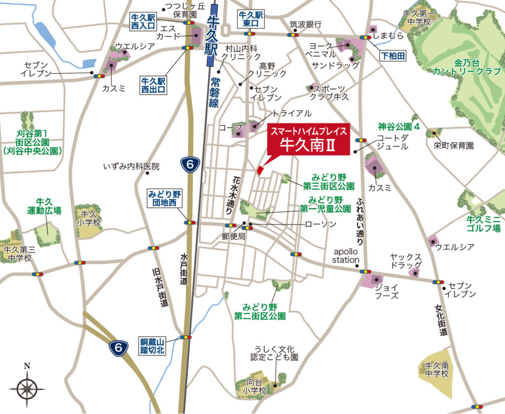 - JR常磐線「牛久」駅まで徒歩13分(約1000m)