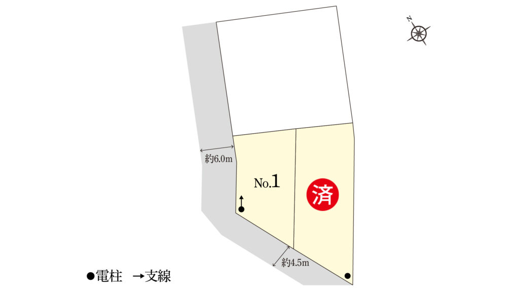 - 西側6m・南西側4.5m公道(アスファルト舗装)