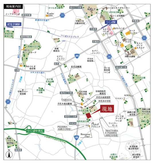 - 徒歩5分の「松代」バス 停 よりバス7分でつくばエクスプレス「つくば」駅へ または、つくばエクスプレス「つくば」駅まで徒歩42分
