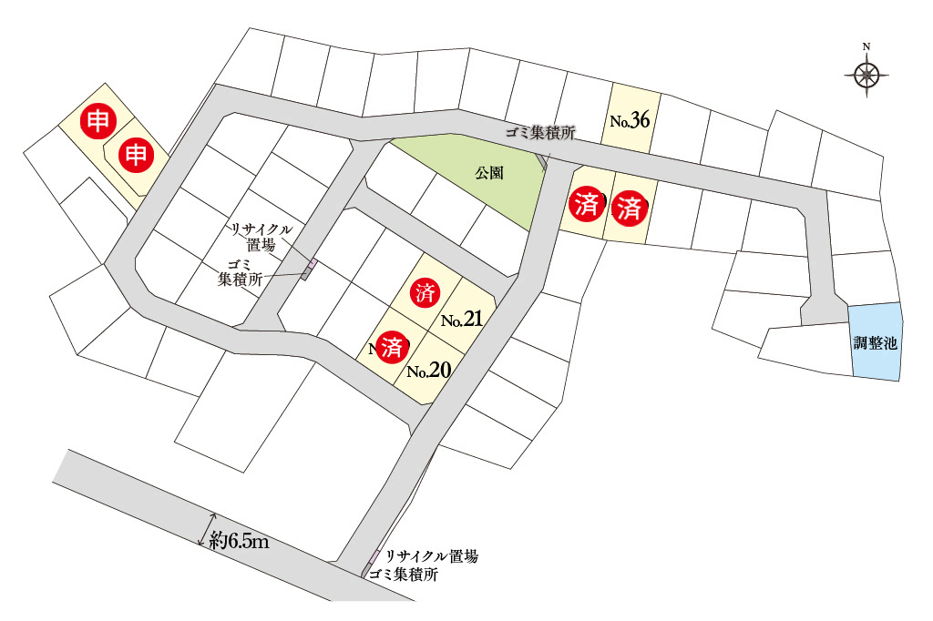 - 南側6.5m公道(アスファルト舗装)