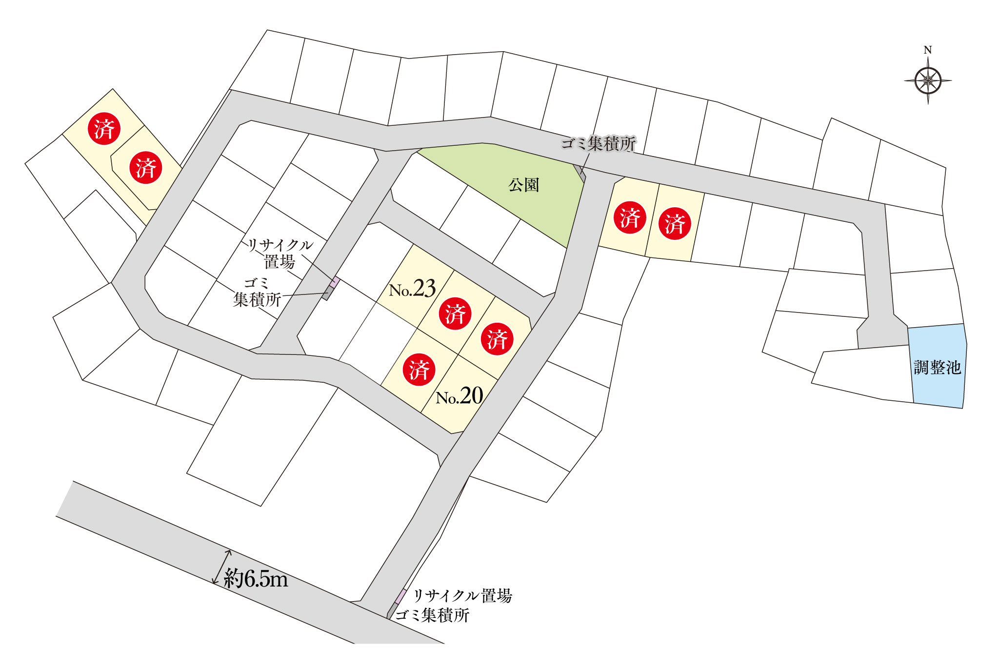 南側6.5m、分譲地内6.0m公道(アスファルト舗装)