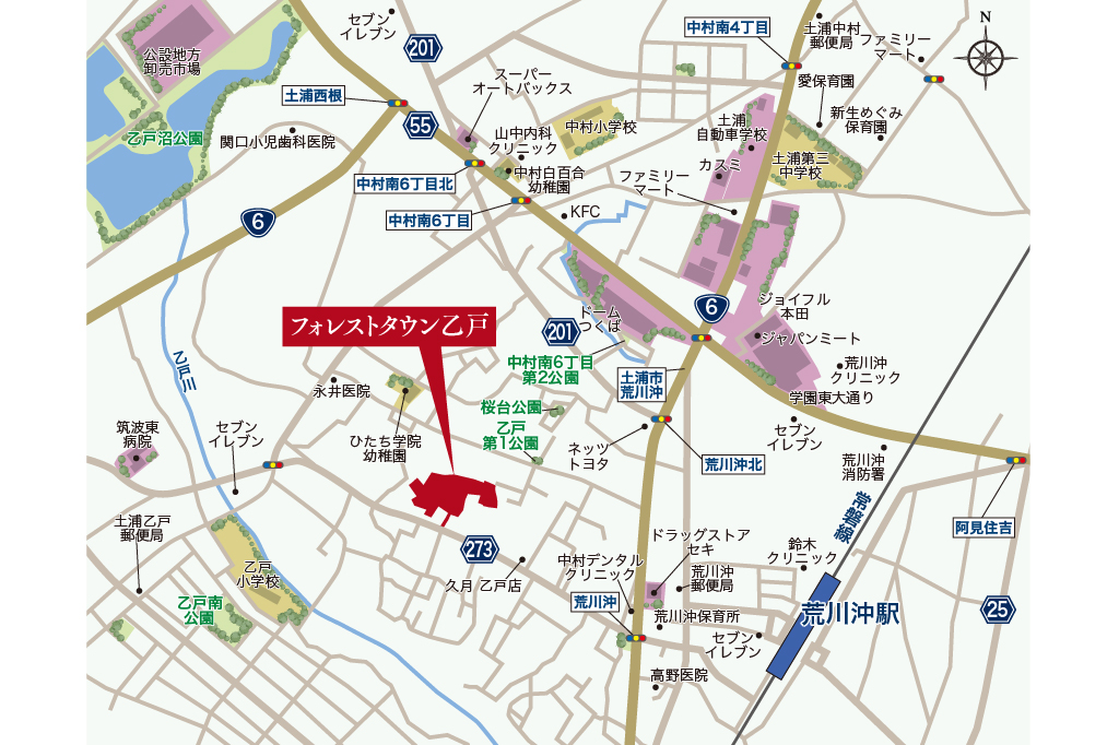 - JR常磐線「荒川沖」駅(徒歩15分~17分/約1200m~1340m)
