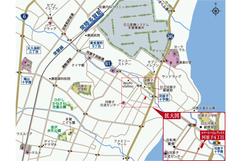 - JR常磐線「常陸多賀」駅まで徒歩16分~17分(約1280m~1310m)