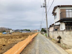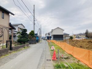 東側8.7m、南側3.9m、分譲地内6.0m公道(アスファルト舗装)