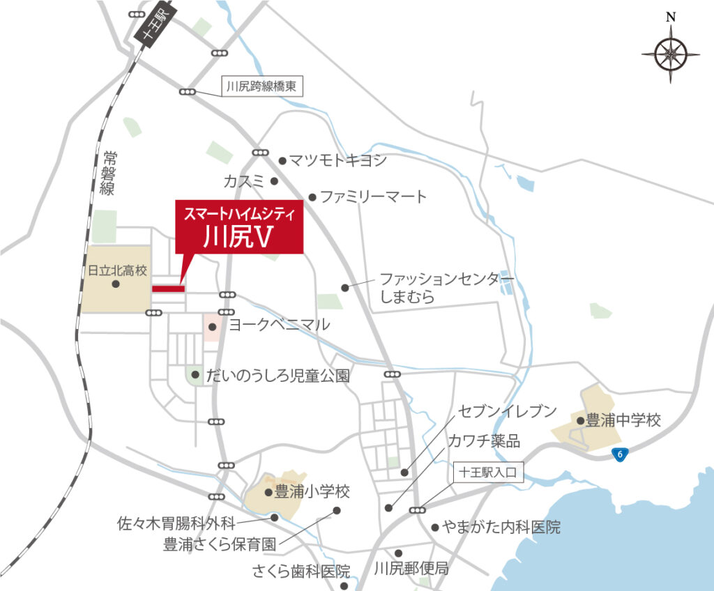 JR常磐線「十王」駅まで徒歩17分(約1290m~1340m)