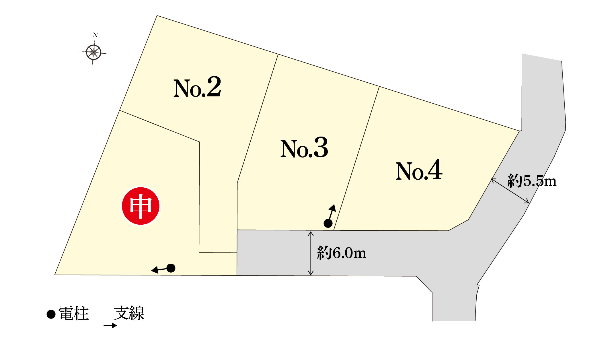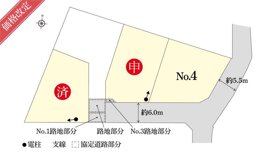 - 東側5.5m公道、分譲地内6.0m公道(アスファルト舗装)
