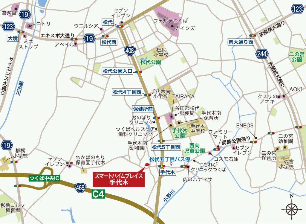 - 徒歩4分の「松代五丁目」バス停からバス18分でつくばエクスプレス「つくば」駅