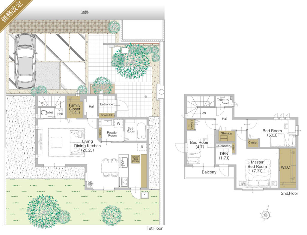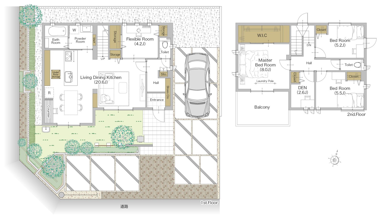 - ※第二種文教地区、第二種高度地区、敷地制限条例区域 ※掲載の完成予想CGは設計図書を基に描きおこしたもので実際とは多少異なる場合がございます。形状、仕様、外構等については行政官庁の指導及び、設計・施工の都合により変更が生じる場合がありますので、予めご了承ください。雨樋、エアコン室外機、給湯器、TVアンテナ等再現されていない設備機器がございます。※植栽は特定の季節の状況を示すものではありません。また竣工時には完成予想CG程度には成長しておらず、位置・形状等は実際とは多少異なる場合があります。電柱等は一部簡略化して表現しております。 ※未入居物件については、補助金等が受けられない場合があります。詳細は営業担当にお問い合わせ下さい。