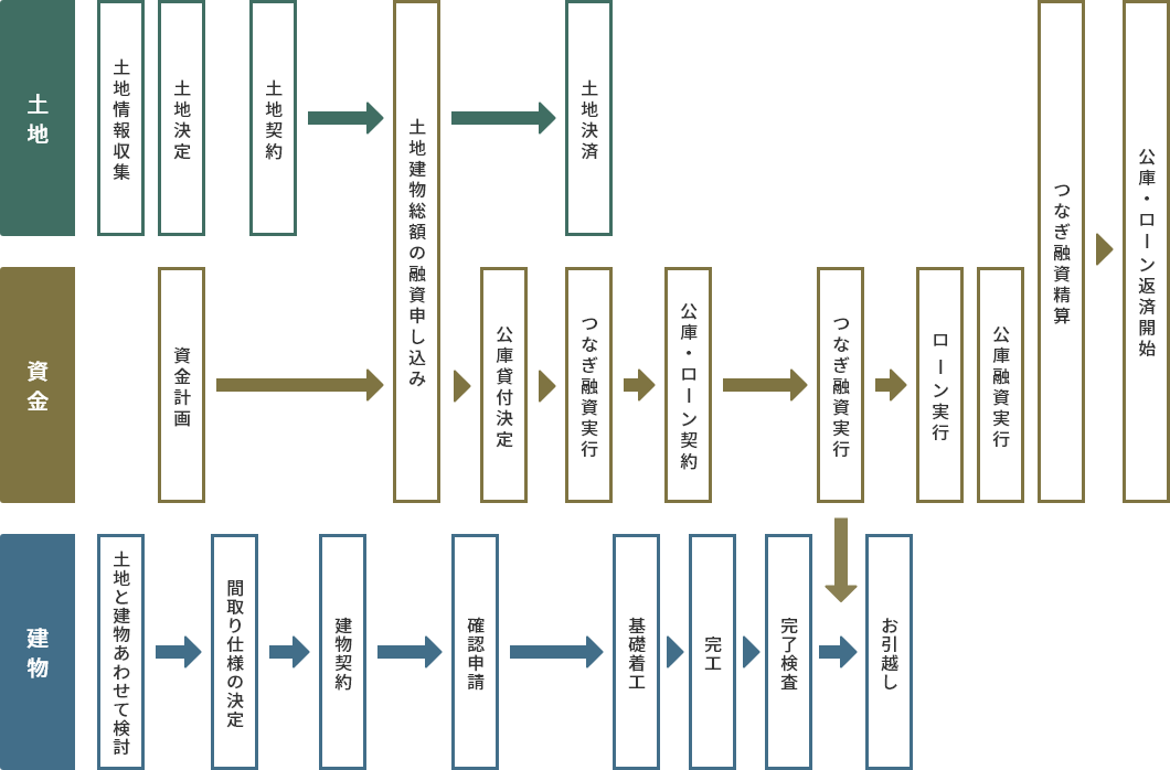 土地購入費、諸経費、建物建築費まで、トータルな予算をにらみながら土地購入をお手伝いしますので、資金面もご安心いただけます。また、ご売却の物件をお持ちでしたら、ご売却まで含めてご相談ください。